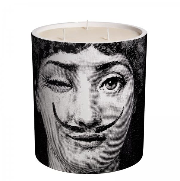 - Metallic-gold, white and black Lina Cavalier print, vessel with lid, hand-poured vegetable-wax blend