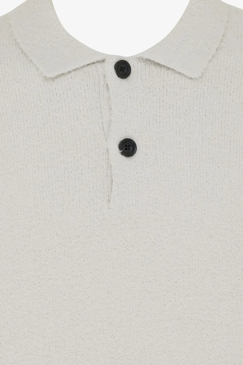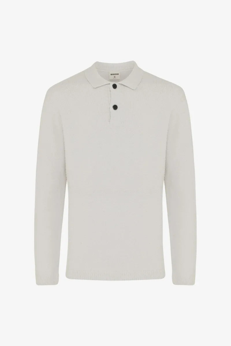 This longsleeve polo from the Monogram collection is crafted from 100% cotton with a soft bouclé texture. Its rich fabric and clean finish bring a modern, cozy vibe perfect for autumn days. Slip into this playful yet polished piece for effortless style and comfort all season long.