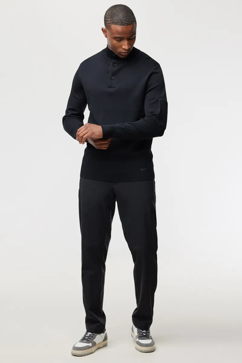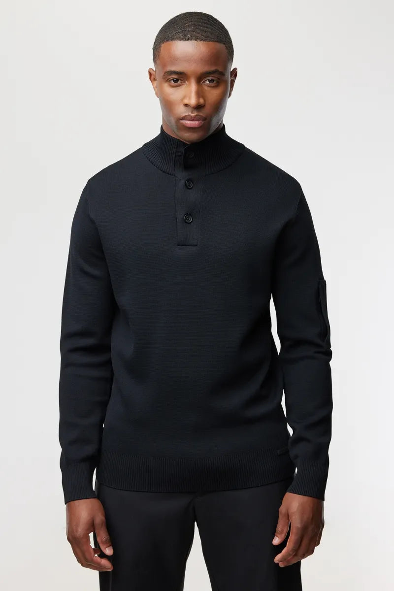The GENTI COOL DRY SWEATER is a knitted pullover featuring a buttoned turtle neck crafted from breathable cool-dry fabric. Made with a technical viscose blend and stretch, it offers top-notch comfort and keeps its shape all day long. Plus, it comes with a handy knitted sleeve pocket for your little essentials. Enjoy a regular fit that’s as playful as it is practical!