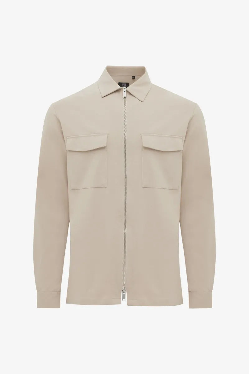 The GENTI DYNAMIC OVERSHIRT JACKET combines contemporary style with everyday comfort. Crafted from a technical cotton blend featuring 52% cotton, 42% polyamide, and 6% elastane, this beige overshirt delivers a smooth fit with exceptional freedom of movement. The zip closure and chest patch pockets create an urban aesthetic, while the stretch fabric maintains its shape through regular wear. Designed in a regular fit with a clean, solid pattern, this versatile piece offers both practicality and modern appeal for the discerning wearer.