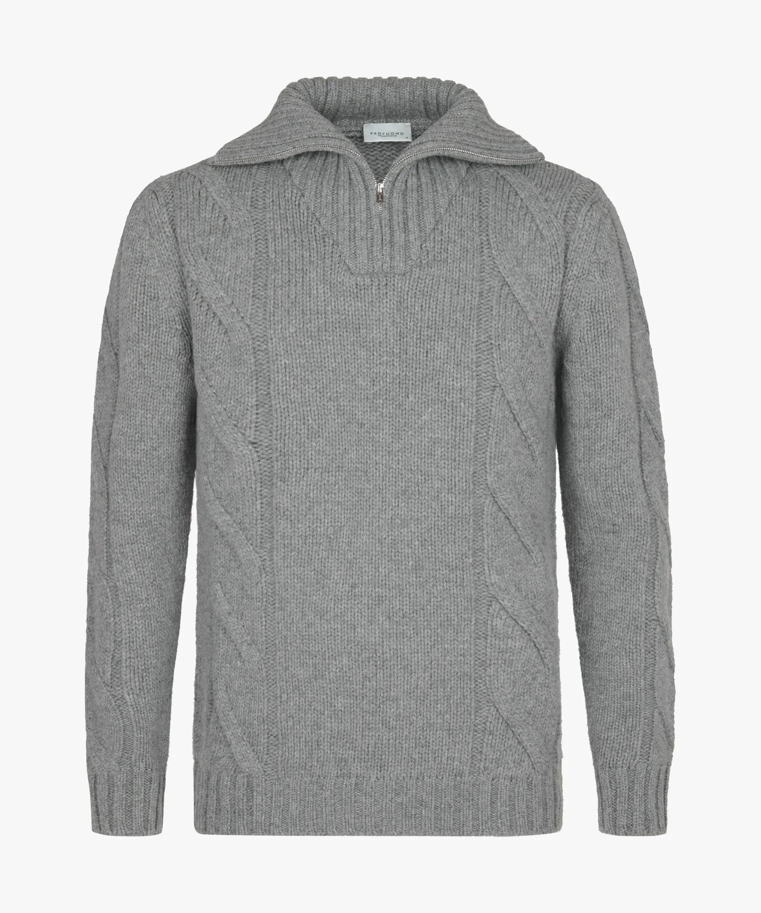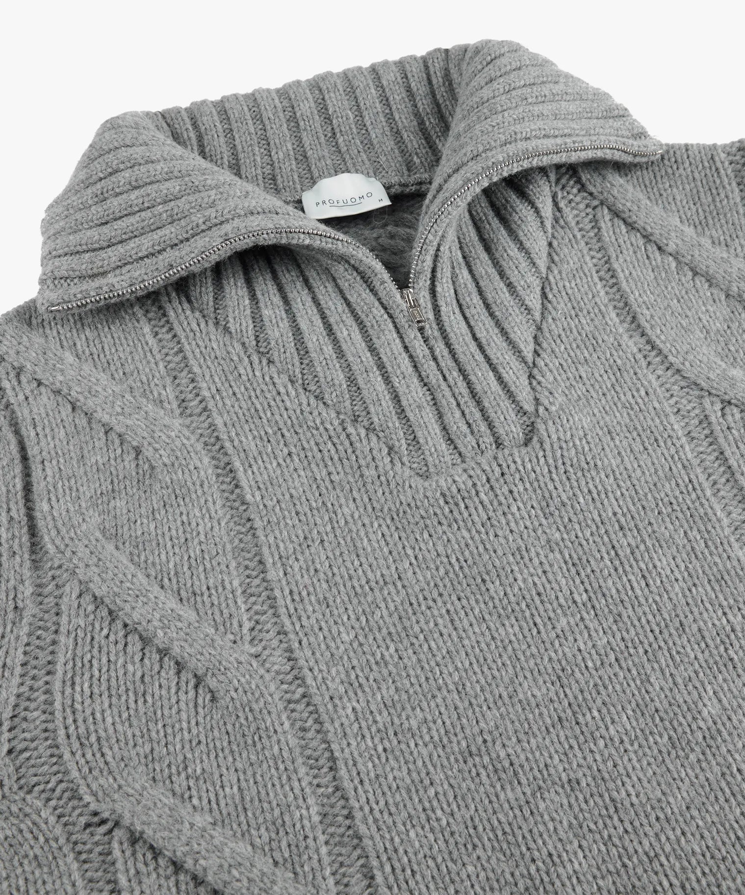 Made in Italy from Italian yarn in a wool blend. Made with a chunky cable structure and a high half-zip for a comfortable and timeless look.