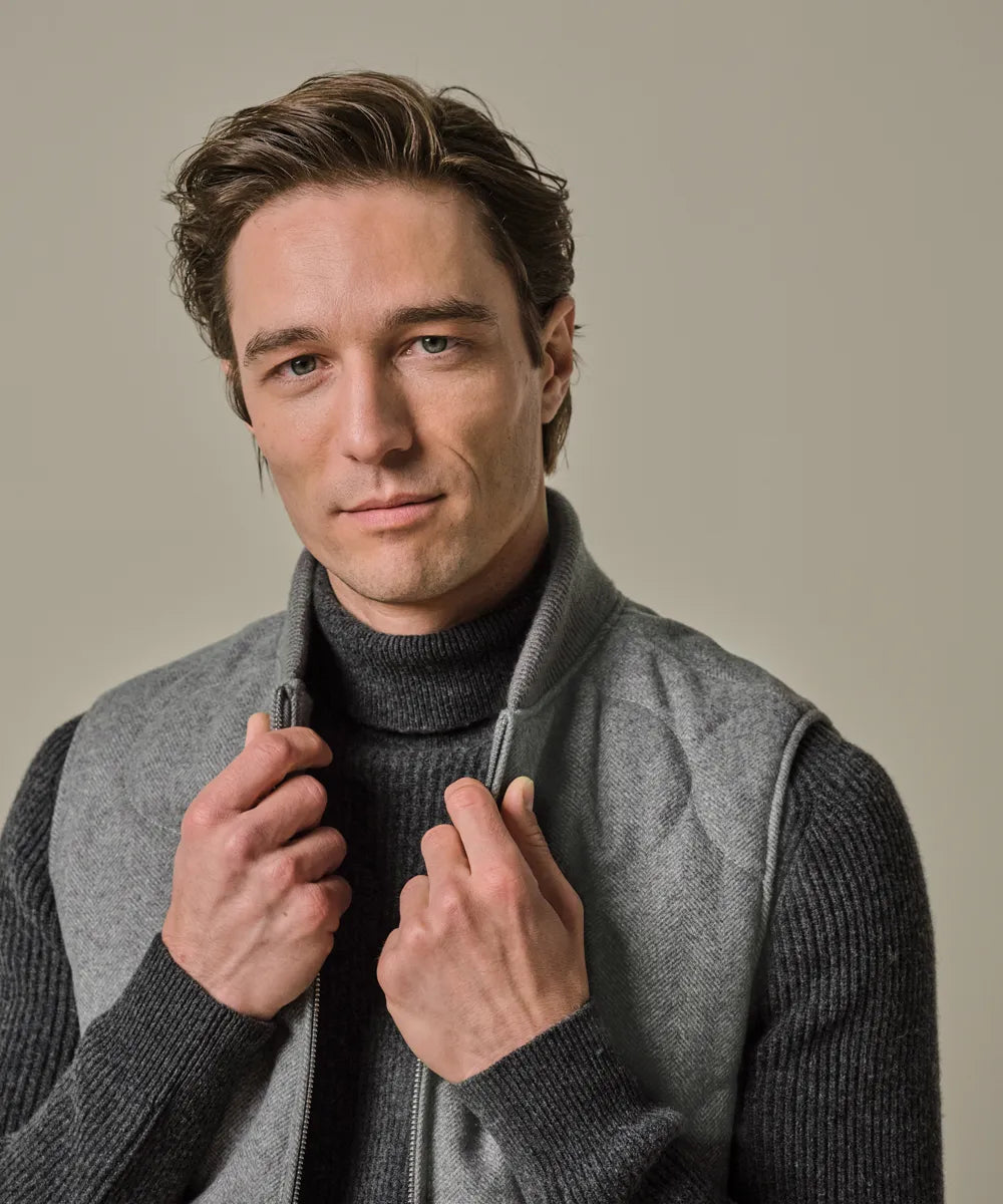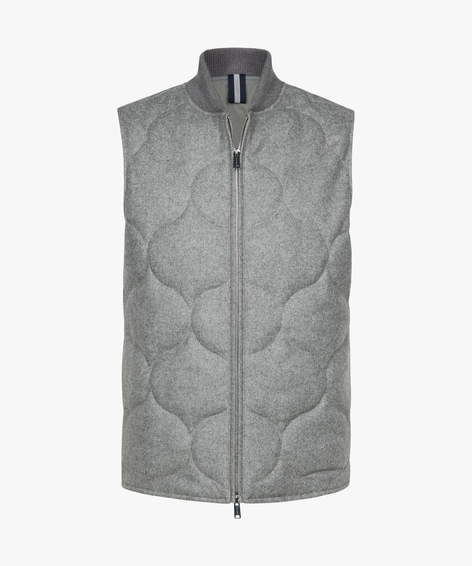This wool body warmer is perfect for both a formal and smart casual look. Made of high-quality Italian wool with a quilted finish. Lightly lined and finished with a zip fastening for a modern, sophisticated look. Combine with the matching wool herringbone trousers for a complete and stylish outfit.