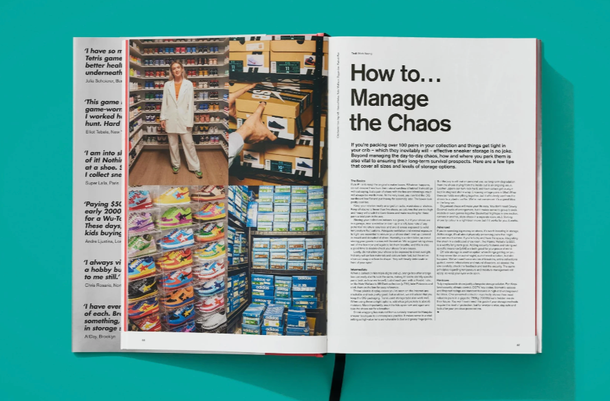 Luxuriously photographed profiles are augmented with a series of informative “How-to” guides stuffed with pro tips on sneaker photography, storage, insurance, cleaning, and avoiding the counterfeit curse. The expertise is priceless. The stories will entertain for days as we seek out the fundamentals of what it means, and takes, to define yourself as a “true collector.”